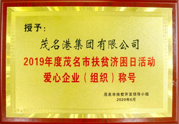 茂名港集團(tuán)獲“2019年度茂名市扶貧濟(jì)困日活動(dòng)愛心企業(yè)(組織)”稱號(hào)