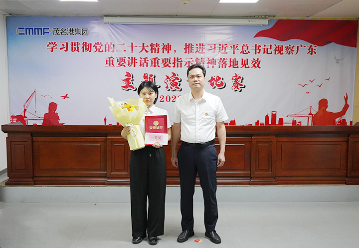 6月27日,茂名港集團舉行“學習貫徹黨的二十大精神,推進習近平總書記視察廣東重要講話重要指示精神落地見效”主題演講比賽決賽。集團黨委副書記、總裁肖炳璋,副總裁李昱祺出席活動,并為獲獎選手頒發(fā)了榮譽證書。