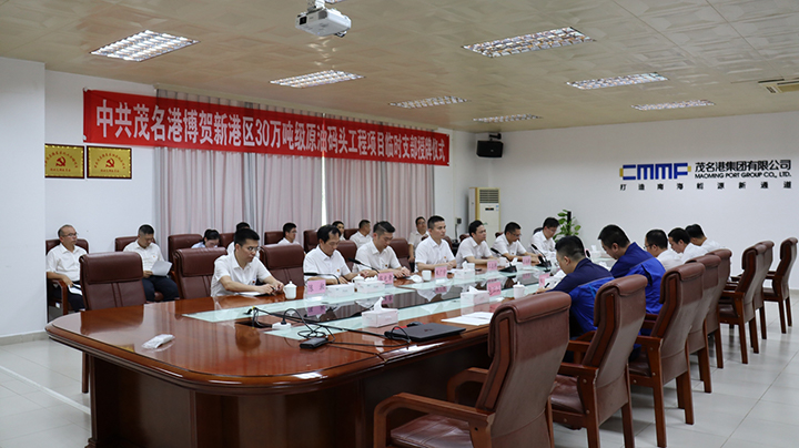 7月1日上午,30萬噸級原油碼頭“臨時黨支部”授牌儀式在博賀港區(qū)辦公樓二樓大會議室舉行,集團黨委書記、董事長王志華,集團黨委副書記、總裁肖炳璋,集團黨委副書記、常務副總裁朱廣宇,集團黨委委員、副總裁、工會主席楊超燦,集團黨委委員、總工程師蔡光章,集團副總裁李昱祺,黨群工作部、項目部黨員代表和施工單位及監(jiān)理單位代表共30多人參加了授牌儀式。