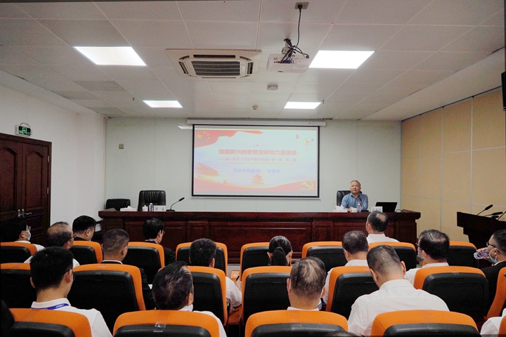 宣講會(huì)上,張善標(biāo)利用豐富的事例和深刻的理論作了主題為《強(qiáng)國(guó)復(fù)興的思想寶庫(kù)和力量源泉》的專題報(bào)告,深入淺出地介紹了三個(gè)方面的內(nèi)容:一是黨的理論創(chuàng)新成果創(chuàng)立的時(shí)代背景;二是馬克思主義中國(guó)化時(shí)代化新的飛躍;三是實(shí)現(xiàn)中華民族偉大復(fù)興的行動(dòng)指南。宣講內(nèi)容重點(diǎn)突出、提煉精準(zhǔn),既有政治高度和理論深度,又緊扣實(shí)際、深入淺出,對(duì)集團(tuán)全體黨員干部深入學(xué)習(xí)領(lǐng)會(huì)習(xí)近平新時(shí)代中國(guó)特色社會(huì)主義思想、抓好貫徹落實(shí)具有重要啟迪和促進(jìn)作用。 會(huì)議指出,學(xué)習(xí)貫徹習(xí)近平新時(shí)代中國(guó)特色社會(huì)主義思想是長(zhǎng)期的政治任務(wù),集團(tuán)全體黨員干部要學(xué)深悟透,知行合一,切實(shí)做到學(xué)習(xí)實(shí)踐兩手抓、兩促進(jìn),把煥發(fā)出來(lái)的學(xué)習(xí)、工作熱情轉(zhuǎn)化為攻堅(jiān)克難、干事創(chuàng)業(yè)的強(qiáng)大動(dòng)力。在當(dāng)前歲末年終沖刺階段,黨員干部要帶頭忠誠(chéng)履職、實(shí)干擔(dān)當(dāng),緊緊圍繞集團(tuán)年度經(jīng)營(yíng)目標(biāo),全力推進(jìn)項(xiàng)目建設(shè)、企業(yè)融資、生產(chǎn)經(jīng)營(yíng)、改革發(fā)展等重點(diǎn)工作,努力完成全年各項(xiàng)任務(wù),以實(shí)干實(shí)績(jī)檢驗(yàn)主題教育成效。
