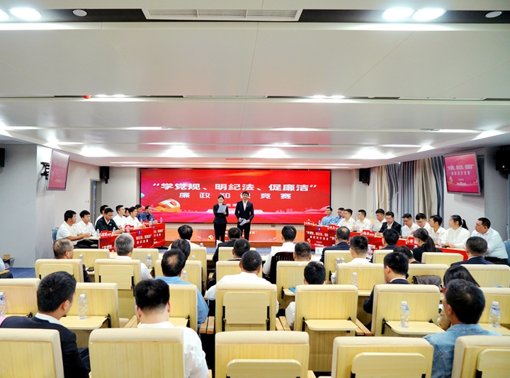 11月22日,集團(tuán)紀(jì)委舉辦了“學(xué)黨規(guī)、明紀(jì)法、促廉潔”廉政知識競賽,來自集團(tuán)機(jī)關(guān)以及各下屬企業(yè)黨支部的7支隊(duì)伍展開了精彩的角逐。集團(tuán)黨委書記、董事長王志華,集團(tuán)黨委委員、副總裁楊超燦,集團(tuán)黨委委員、紀(jì)委書記、監(jiān)察專員陳軍,集團(tuán)黨委委員、總工程師蔡光章,集團(tuán)黨委委員、副總裁周成出席活動(dòng),來自機(jī)關(guān)各部(室)、下屬企業(yè)黨員干部職工代表70多名同志觀看比賽。