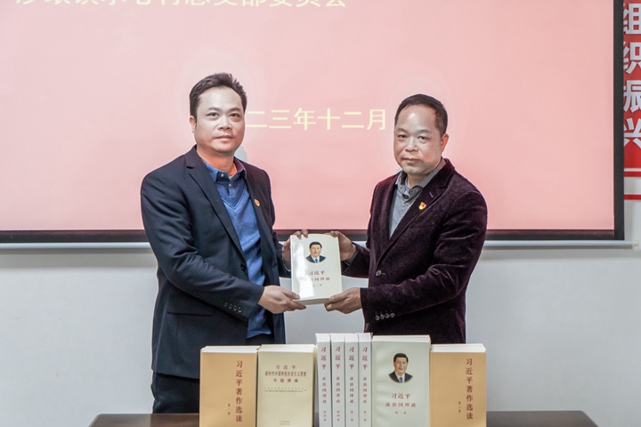 隨后,肖炳璋一行來到沙瑯鎮(zhèn)水心村進(jìn)行實(shí)地調(diào)研。鎮(zhèn)委副書記賴水寅表示,在茂名港集團(tuán)的極力幫扶下,水心村的黨員干部發(fā)揮帶頭作用,全村上下一心,在產(chǎn)業(yè)興農(nóng)的項(xiàng)目上取得巨大的成效。肖炳璋表示,集團(tuán)高度重視沙瑯鎮(zhèn)的幫扶項(xiàng)目,并對鎮(zhèn)領(lǐng)導(dǎo)、駐鎮(zhèn)工作隊(duì)成員所取得的工作成效表示祝賀,茂名港集團(tuán)將繼續(xù)予以大力支持,也希望駐鎮(zhèn)干部把鄉(xiāng)村振興工作做好做細(xì)。同時(shí),為了讓水心村精神文化水平能與項(xiàng)目建設(shè)同步高質(zhì)量發(fā)展,座談會(huì)結(jié)束后在黨建活動(dòng)室舉行贈(zèng)書儀式。