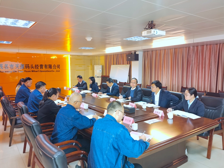 12月23日,茂名港集團(tuán)黨委委員、副總裁周成率隊(duì)到集團(tuán)參股企業(yè)茂名市天源碼頭經(jīng)營(yíng)有限公司就2025年度工作思路及計(jì)劃進(jìn)行調(diào)研交流。茂名市天源碼頭經(jīng)營(yíng)有限公司總經(jīng)理陳升陪同調(diào)研,集團(tuán)財(cái)務(wù)部、濱?毓晒、港口經(jīng)營(yíng)公司、股權(quán)代表等相關(guān)人員參加調(diào)研會(huì)。